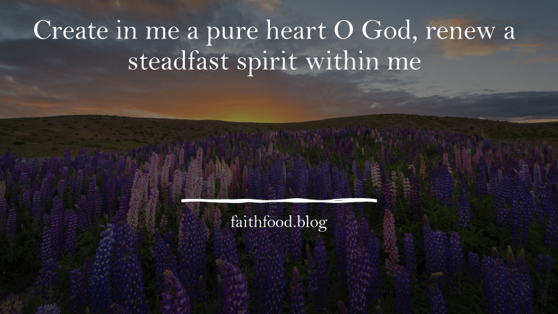 Create in me a pure heart, O God and renew a steadfast spirit within me (Psalm 51:10).